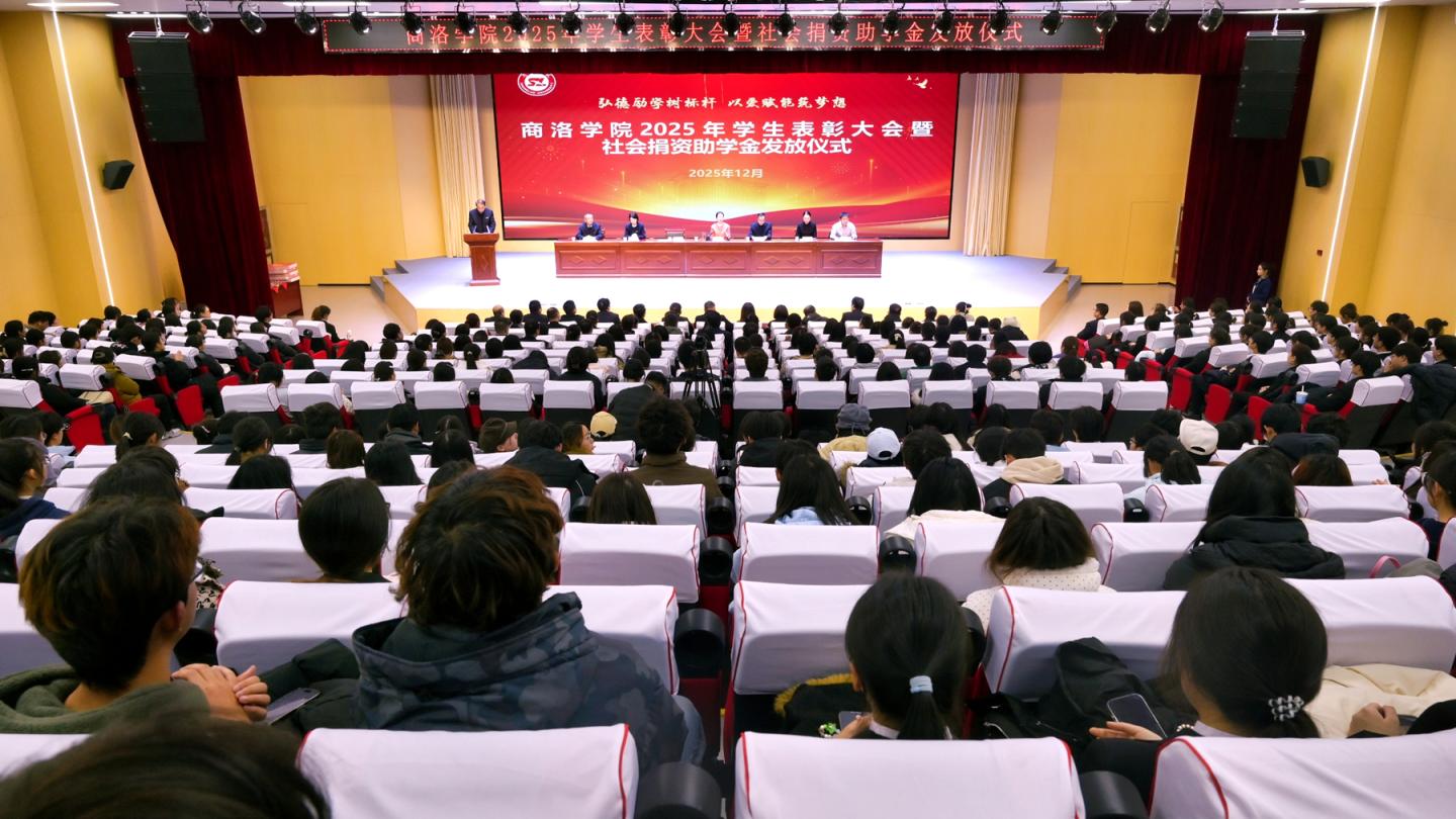 12月17日下午,我校以“弘德勵學樹標桿 以愛賦能筑夢想”為主題,隆重舉行2025年度學生表彰大會暨社會捐資助學金發(fā)放儀式。黨委副書記、校長權雅寧,國網(wǎng)商洛供電公司紀委書記、工會主席趙鈺,中國電信商洛分公司副總經(jīng)理王娜,中國移動商洛分公司副總經(jīng)理許鵬出席活動。大會由校黨委副書記王新軍主持。
