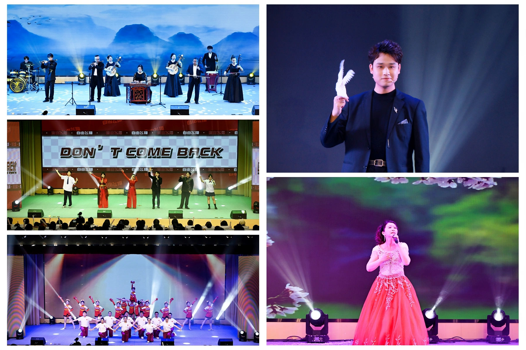 第二篇章“初心如磐·守杏壇”聚焦教育者的初心本色。藝術(shù)學(xué)院民樂(lè)合奏《浮光》清雅悠遠(yuǎn),象征師者光輝;教育科學(xué)學(xué)院與藝術(shù)學(xué)院帶來(lái)的歌曲串燒《流金歲月》帶領(lǐng)觀眾在熟悉的旋律中重溫時(shí)代記憶;健康管理學(xué)院的魔術(shù)表演《奇跡進(jìn)行時(shí)》妙趣橫生,驚喜連連;獨(dú)唱《春天的芭蕾》用高亢的歌聲寄予了對(duì)美好未來(lái)的憧憬;由體育教學(xué)研究部教師和校健美操隊(duì)帶來(lái)的啦啦操《與時(shí)代共舞》,以動(dòng)感十足的表演,淋漓盡致地展現(xiàn)了師生的蓬勃活力與昂揚(yáng)斗志。