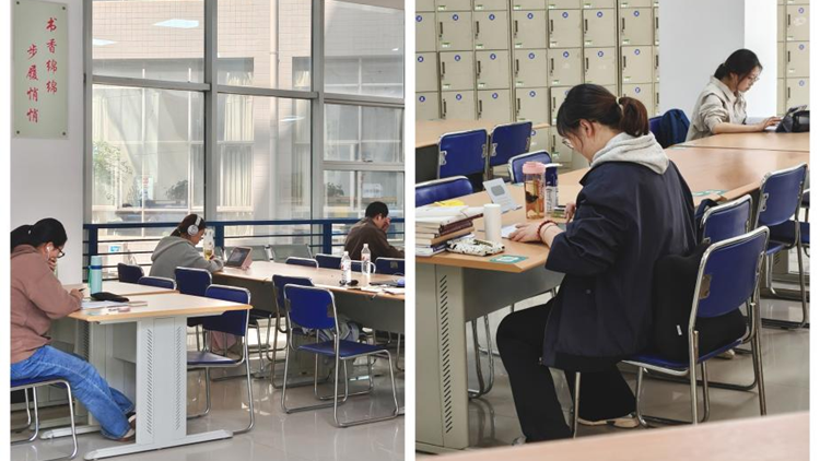圖書(shū)館內(nèi)同樣是一派繁忙而寧?kù)o的學(xué)習(xí)景象。所有閱覽室和自習(xí)區(qū)均正常開(kāi)放,同學(xué)們或埋頭苦讀,或認(rèn)真做著筆記,沉浸在知識(shí)的海洋里。