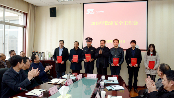 3月19日,我校召開(kāi)2018年穩(wěn)定安全工作會(huì)議,傳達(dá)全省高校全面從嚴(yán)治黨工作會(huì)議、高校穩(wěn)定安全工作會(huì)議精神,表彰2017年度校園治安綜合治理先進(jìn)集體、先進(jìn)個(gè)人,部署本年度穩(wěn)定安全工作。校領(lǐng)導(dǎo)龍治剛、王思懷、魏書(shū)堂、彭虎軍、劉寶盈、劉勇,黨委委員王新軍、李超、楊存典、張向東出席會(huì)議,各職能部門(mén)主要負(fù)責(zé)人、各院部黨政主要負(fù)責(zé)人參加會(huì)議。會(huì)議由黨委副書(shū)記彭虎軍主持。