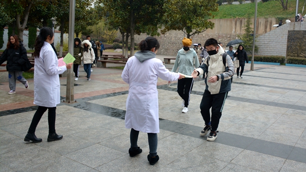 12月1日是第32個(gè)“世界艾滋病日”,今年的宣傳主題是“社區(qū)動員同防艾,健康中國我行動”。11月29日,在第32個(gè)“世界艾滋病日”來臨之際,我校醫(yī)務(wù)室聯(lián)合校志愿者協(xié)會舉行艾滋病防控宣傳活動?;顒又?,我校醫(yī)務(wù)室工作人員為師生宣傳普及艾滋病防控的基本知識并發(fā)放宣傳彩頁3000余份、防艾健康教育處方1000余份、宣傳海報(bào)300余張。