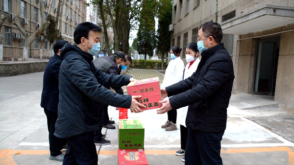 連日來,我校教職工上下一心、堅守陣地,落實落細(xì)各項防控措施,全力以赴做好疫情防控工作,取得了良好的工作成效和社會示范效應(yīng)。為此,陜西省教科文衛(wèi)體工會還專門給我校疫情防控工作撥付了補助金。2月20日,校黨委副書記彭虎軍、副校長王新軍帶著省教科文衛(wèi)體工會的關(guān)心和支持,帶著校黨委、校工會、全體師生的關(guān)懷和牽掛,走訪慰問了堅守在學(xué)??挂咭痪€的工作人員,把牛奶、八寶粥、方便面等慰問品送到他們身邊,感謝他們?yōu)橐咔榉揽刈鞒龅呢暙I(xiàn),鼓勵他們堅定信心、強化責(zé)任,以細(xì)之又細(xì)、實之又實的作風(fēng)堅決打贏這場疫情防控阻擊戰(zhàn),叮囑他們在履職盡責(zé)的同時務(wù)必加強個人防護(hù),緩解心理壓力,避免疲勞作戰(zhàn),確保身心健康安全。