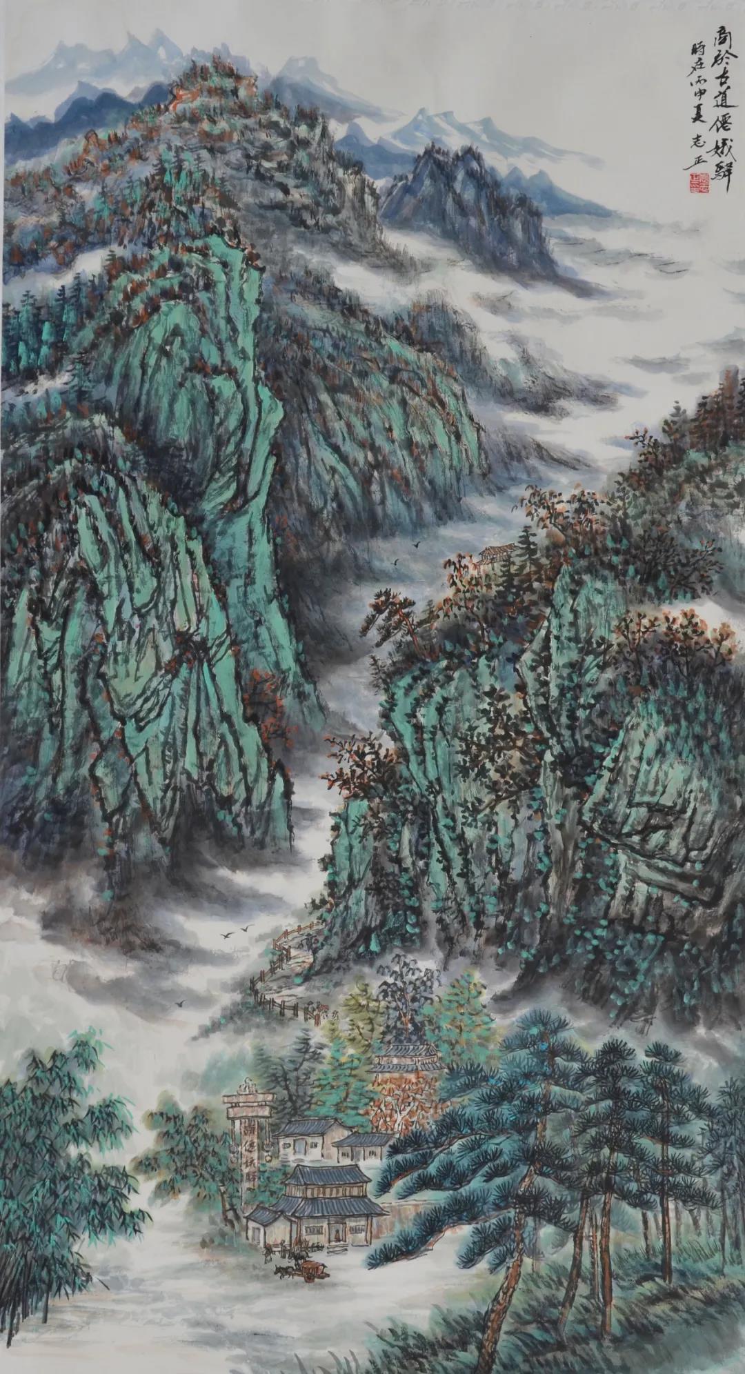 本次布展別出心裁,用原風(fēng)原貌的秦嶺鄉(xiāng)村建筑元素分隔空間,場(chǎng)景與作品相呼應(yīng),讓觀者身臨其境,一步一景。展出的60余件寫生作品和20余件創(chuàng)作作品,有巨制、小品、山水、人物、書法,筆觸疏密有致,筆墨生動(dòng)有趣,不僅可賞“天地之大美”,亦可探“一枝一葉總關(guān)情”,既有表現(xiàn)大美山河的十米長(zhǎng)卷《溪山清遠(yuǎn)圖》、飽含哲理的《丹崖高秋》《山那邊》等畫作,也有謳歌祖國(guó)美麗山河的《華山勝景圖》《晴云暖照漫川關(guān)》等作品。其中,小幅寫生作品畫面靜雅、恬淡,充滿平淡天真的氣氛,其他作品多體現(xiàn)北派山水的堂堂君子風(fēng)范,展現(xiàn)了大秦嶺氣勢(shì)磅礴的風(fēng)貌特質(zhì)。