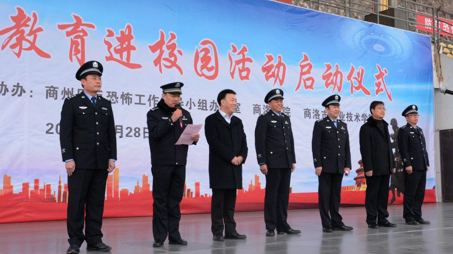 12月28日,“商洛市反恐怖宣傳教育進校園”活動在我校舉行啟動儀式,校黨委副書記彭虎軍,商州區(qū)副區(qū)長、商州公安分局黨委書記、局長柳禮群,商洛市反恐支隊、商州公安分局反恐大隊、巡特警大隊、城關(guān)派出所民警及我校師生代表共400余人參加活動。