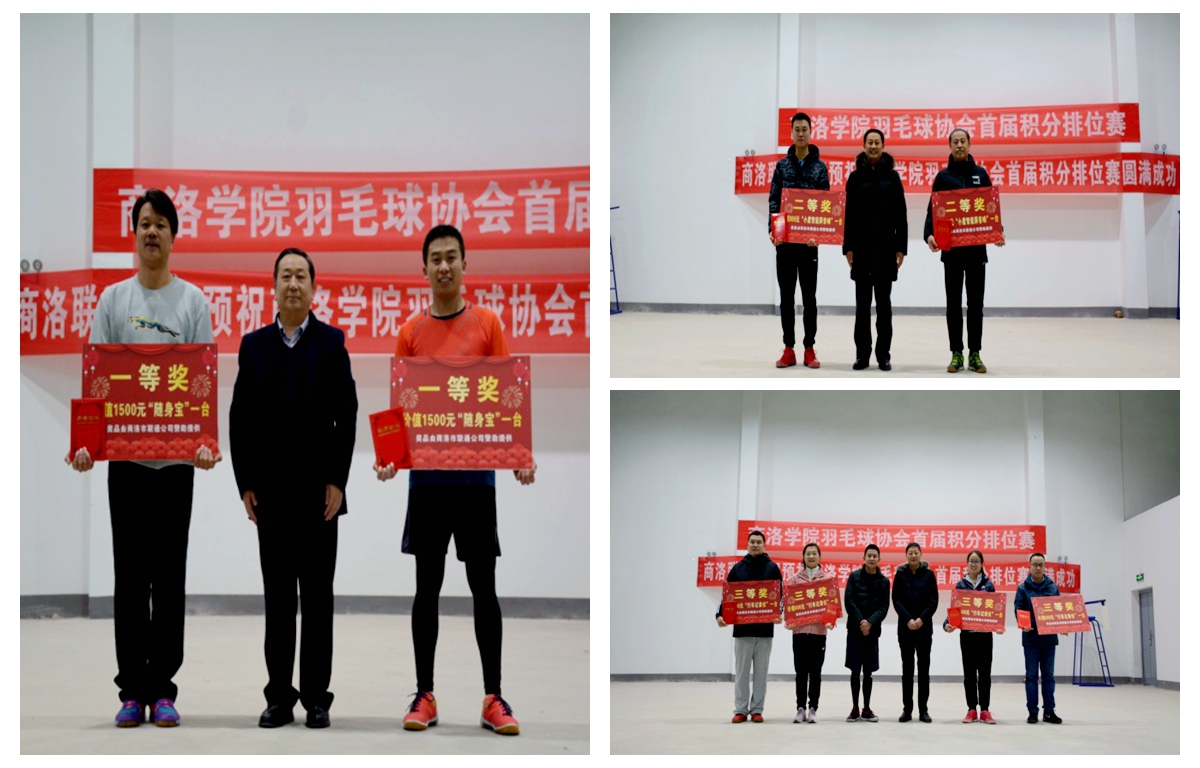 經過激烈角逐,王健、劉彥春獲得一等獎;楊軍、張宗海獲得二等獎;李斌、葛建平、何佳佳、楊艷獲得三等獎。我校校工會、體育教學研究部、羽毛球協(xié)會相關負責人,中國聯(lián)通公司商洛分公司、商洛市裕元商旅服務有限公司、商洛市羽人俱樂部相關人員一同觀看了比賽,并為獲獎者頒發(fā)了榮譽證書和獎品。