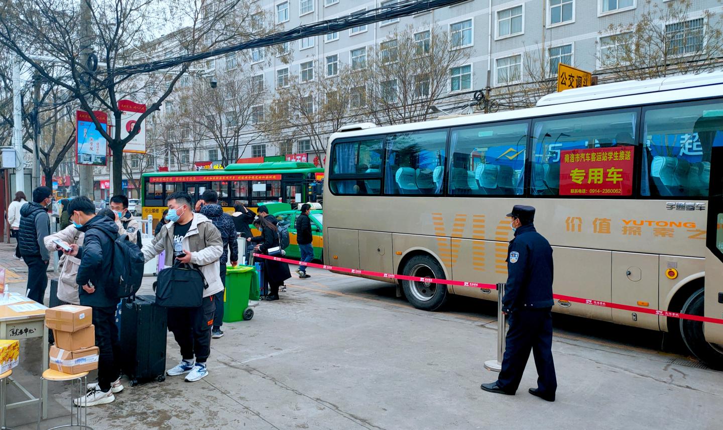為確保全體學(xué)生平穩(wěn)、有序、安全返校,學(xué)校在市火車(chē)站、汽車(chē)站分別設(shè)置了接送專車(chē),將我校學(xué)生直送至兩個(gè)校區(qū)。集中或自行乘車(chē)返校的學(xué)生在工作人員的引導(dǎo)下逐一進(jìn)行健康碼查驗(yàn)、行李消殺、口罩更換、身份核實(shí)、體溫測(cè)量之后進(jìn)入校園,徑直前往所在宿舍辦理入住手續(xù),接受集中觀察。2月28日上午,學(xué)校安排醫(yī)護(hù)人員對(duì)外省返校學(xué)生統(tǒng)一進(jìn)行了核酸檢測(cè)。檢測(cè)及觀察期間,后勤保障部門(mén)和二級(jí)學(xué)院安排專人為學(xué)生定時(shí)送餐。