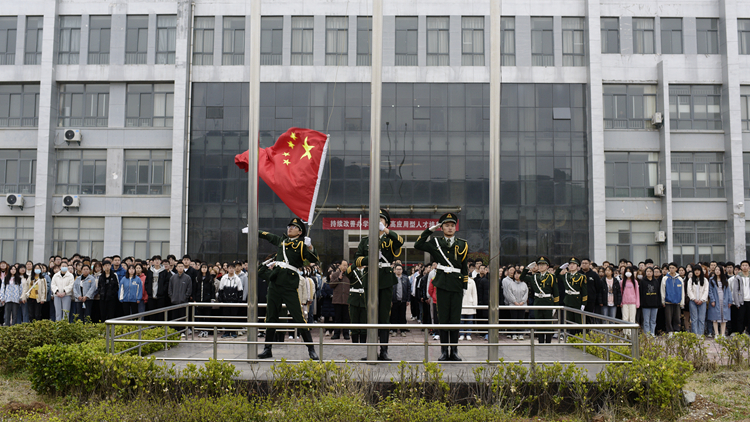 清晨7時(shí)20分,晨曦微露,國(guó)旗護(hù)衛(wèi)隊(duì)隊(duì)員邁著堅(jiān)定的步伐將國(guó)旗護(hù)送到升旗臺(tái)前。隨著雄壯的《義勇軍進(jìn)行曲》奏響,旗手振臂將國(guó)旗展向空中,鮮艷的五星紅旗迎著微風(fēng)冉冉升起,飄揚(yáng)在丹江校區(qū)上空,為雨后的校園增添了一抹莊嚴(yán)的色彩?,F(xiàn)場(chǎng)師生面向國(guó)旗肅立行注目禮,向國(guó)旗表達(dá)最崇高的敬意。