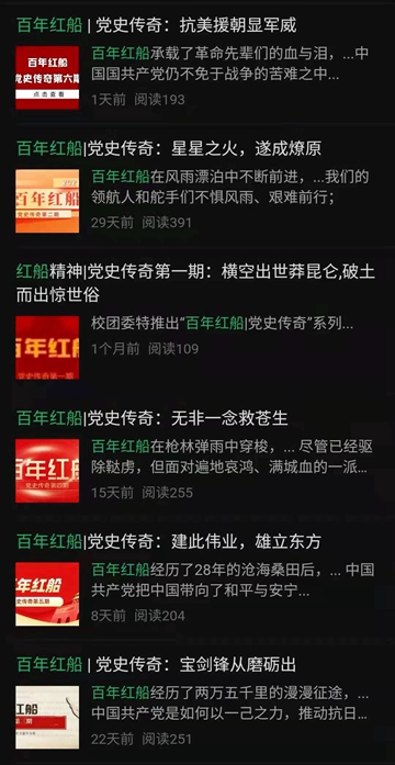 該欄目堅(jiān)持每周推送一期新內(nèi)容,截至目前,總共推出6期,受到廣大團(tuán)員青年熱烈追捧。同學(xué)們紛紛表示,走得再遠(yuǎn)都不能忘記來時(shí)的路,“紅船精神”是中國革命精神之源,我們學(xué)習(xí)黨史首先要從學(xué)習(xí)“紅船精神”開始,學(xué)習(xí)中國共產(chǎn)黨開天辟地、敢為人先的首創(chuàng)精神,堅(jiān)定理想、百折不撓的奮斗精神,立黨為公、忠誠為民的奉獻(xiàn)精神。在“兩個(gè)一百年”奮斗目標(biāo)的交匯點(diǎn),面對(duì)世界百年未有之大變局,我們尤為需要弘揚(yáng)“紅船精神”,用“紅船精神”激勵(lì)和鼓舞青年一代奮發(fā)有為,積極投身中國特色社會(huì)主義偉大實(shí)踐,為中華民族偉大復(fù)興貢獻(xiàn)青春力量。