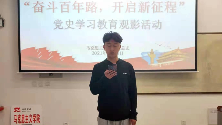 ——組織黨史學(xué)習(xí)教育觀影活動。4月18日晚,馬克思主義學(xué)院在8號教學(xué)樓多媒體27教室開展“奮斗百年路,開啟新征程”黨史學(xué)習(xí)教育觀影活動,2019級和2020級全體同學(xué)一起觀看了影片《建黨偉業(yè)》。觀影活動結(jié)束后,同學(xué)們紛紛表示,先輩們心中裝著國家,將自己的命運與國家前途命運聯(lián)系在一起,將愛國救亡的擔(dān)子挑在肩上,正是有了這些革命先輩的努力,才有了我們今天的美好生活。身處和平年代的我們要珍惜好,守護(hù)好這份來之不易的美好生活,要積極踐行黨的宗旨,擁護(hù)黨的領(lǐng)導(dǎo),為建設(shè)更加富強(qiáng)、民主、文明、和諧、美麗的社會主義現(xiàn)代化強(qiáng)國而不懈奮斗。