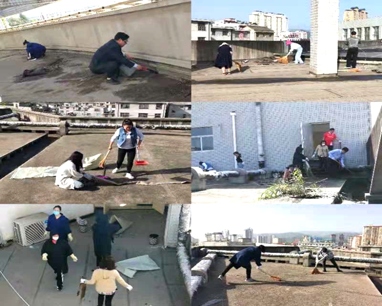 在圖書館黨政負(fù)責(zé)人的帶領(lǐng)下,40余名館員手持勞動工具,全面清理了圖書樓樓頂堆積已久的磚頭、水泥塊、廢棄建筑材料,鏟走下水口附近雨水沖積的淤泥、垃圾,疏通了排水管道,清理了三十多立方垃圾,為師生營造了良好的閱讀及學(xué)習(xí)環(huán)境。