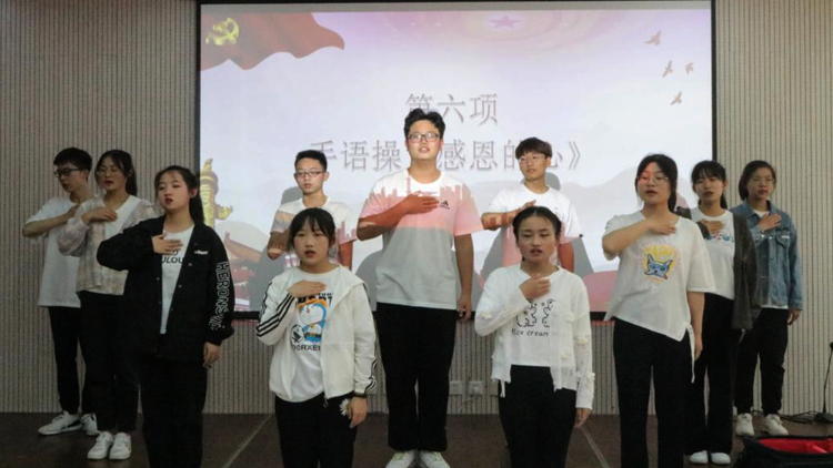 活動期間,師生們還集體觀看學(xué)習(xí)了“回顧黨史悟初心,感念師恩頌真情”紅色視頻。四位學(xué)生用深情激昂的配樂詩朗誦《感恩有您》,帶領(lǐng)大家重溫中國共產(chǎn)黨不屈不撓艱苦奮斗的光輝歷程。感恩手語操使全場散發(fā)著愛的芬芳,流淌著愛的旋律?;顒幼詈?,學(xué)院向全體與會同學(xué)發(fā)放了感恩主題書簽,使廣大學(xué)子時時感黨恩,刻刻念師情,牢記責(zé)任和擔(dān)當(dāng)。