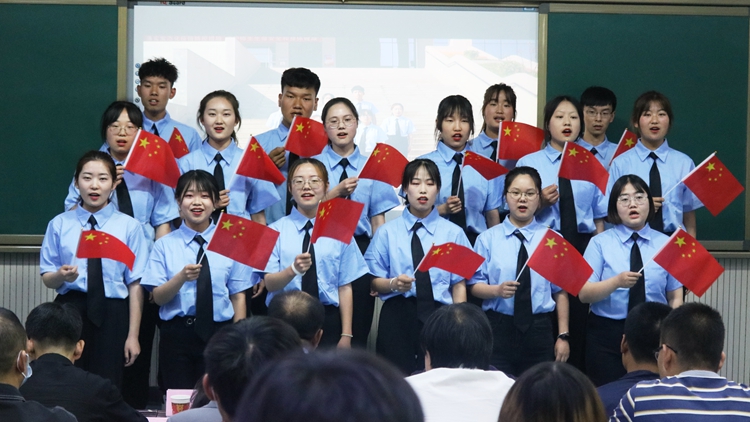 活動中,師生集體收看了由人文學(xué)院拍攝制作的《我和我的祖國》短視頻。視頻以我校校園景物為底色,以人文學(xué)子青春向黨為主題,集中展示了人文學(xué)院開展“不負青春韶華、爭做新時代文明大學(xué)生”主題教育活動的成效,展現(xiàn)了人文學(xué)子青春向上、積極進取的精神風(fēng)貌。當(dāng)《我和我的祖國》歌聲響起時,現(xiàn)場全體人員齊聲同唱,深情動人的歌聲道出了我校師生愛黨愛國愛社會主義的情懷。