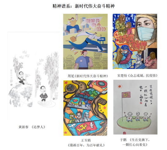 此次展覽是藝術(shù)學(xué)院深入開展“百年黨史”學(xué)、研、創(chuàng)活動,充分挖掘紅色資源,不斷創(chuàng)新學(xué)習(xí)形式,引導(dǎo)師生將所學(xué)所思、所獲所得,用手中的畫筆和心中的真情匯聚成一幅幅鮮活生動的漫畫,歌頌中國共產(chǎn)黨百年奮斗歷程和輝煌成就,激勵全體黨員師生自覺肩負時代重任和使命擔當,大力發(fā)揚紅色傳統(tǒng),傳承紅色基因,匯聚學(xué)校新時代教育事業(yè)高質(zhì)量發(fā)展的磅礴力量。展覽圍繞“革命精神、艱苦創(chuàng)業(yè)精神、改革開放精神、新時代偉大奮斗精神”四個主題,共征集到師生黨員創(chuàng)作的漫畫作品137幅,集中展覽112幅。
