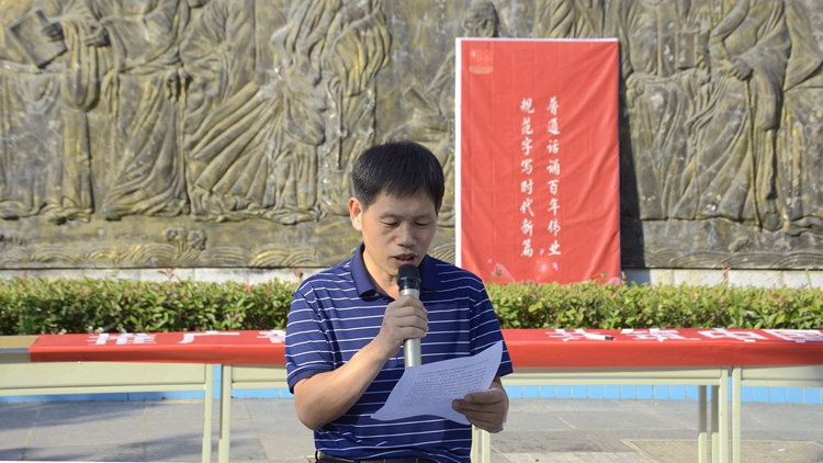 為貫徹落實(shí)全國(guó)語(yǔ)言文字會(huì)議精神,傳承弘揚(yáng)以語(yǔ)言文字為載體的中華優(yōu)秀文化,進(jìn)一步增強(qiáng)我校師生學(xué)習(xí)國(guó)家通用語(yǔ)言文字意識(shí),9月13日下午,人文學(xué)院舉辦了“普通話誦百年偉業(yè),規(guī)范字寫時(shí)代新篇”第24屆普通話推廣宣傳周活動(dòng)啟動(dòng)儀式。人文學(xué)院院長(zhǎng)張文諾作動(dòng)員講話,教務(wù)處副處長(zhǎng)高擴(kuò)昌宣布“推普周”活動(dòng)正式啟動(dòng)。
