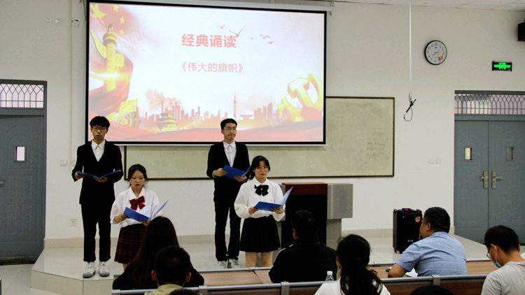 活動開始,同學(xué)們誦讀了一曲歌頌黨的史詩——《偉大的旗幟》,唱響紅色經(jīng)典《歌唱祖國》,獻(xiàn)禮建黨百年華誕。大家在鏗鏘有力的誦讀聲和嘹亮的歌唱聲中,共同回憶黨的輝煌歷史,感悟信仰的偉力,堅(jiān)定了聽黨話、跟黨走的信心,燃燒了愛國主義激情,唱響了時(shí)代最強(qiáng)音——強(qiáng)國有我。