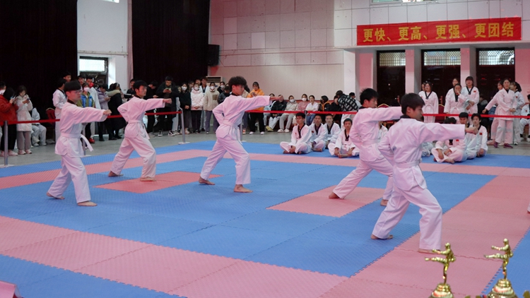 本次比賽包括跆拳道品勢、特技擊破和空手道競技三個部分。賽場上,運動員們不畏強敵、奮力拼搏,向現(xiàn)場觀眾展示了跆拳道空手道的獨特風(fēng)采。跆拳道品勢比賽中,運動員們秉持“友誼第一、比賽第二”的原則,充分展示了“禮義廉恥、忍耐克己、百折不屈”的跆拳道精神;特技擊破運動員們有力的揮拳、快速的出腿,完美展現(xiàn)了自己的特技和功力。空手道運動員們跳、踢、擊打、擋、躲等一系列動作將現(xiàn)場氣氛帶到了高潮。