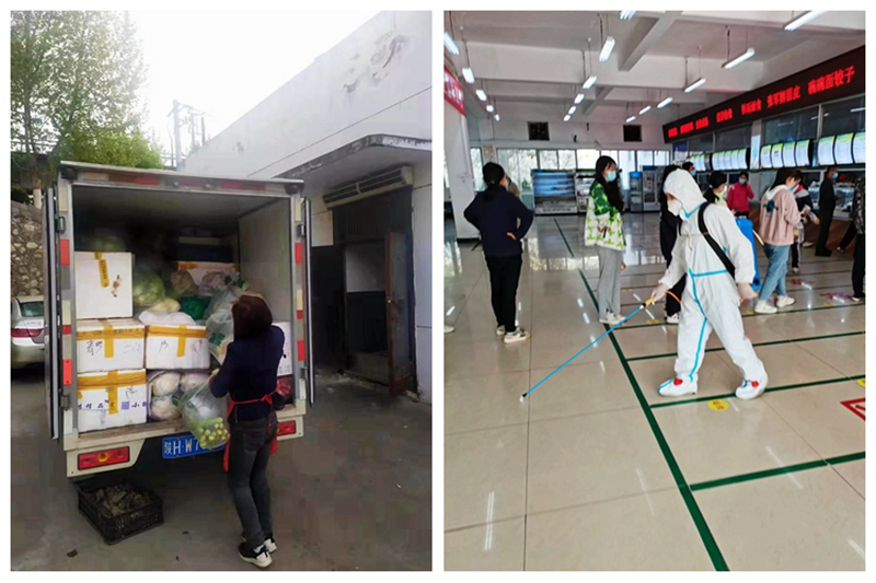 針對封控帶來的防疫物資供應(yīng)緊張、采購壓力等難題,后勤保障處多方籌措,及時(shí)采購口罩、測溫器、防護(hù)服、體溫計(jì)、消毒液等衛(wèi)生防疫物資,儲備米、面、糧、油等生活保障物資,同時(shí)建立了穩(wěn)定的供應(yīng)渠道。兩校區(qū)食堂嚴(yán)格落實(shí)衛(wèi)生消毒檢查、疫情監(jiān)測、車輛消毒監(jiān)督等工作措施,各窗口飯菜供應(yīng)齊全。飲食服務(wù)中心認(rèn)真落實(shí)學(xué)?!板e(cuò)峰就餐”“禁止堂食”等工作要求,安排專人引導(dǎo)學(xué)生有序進(jìn)出餐廳,保持“一米線”排隊(duì),實(shí)現(xiàn)全程閉環(huán)管理。