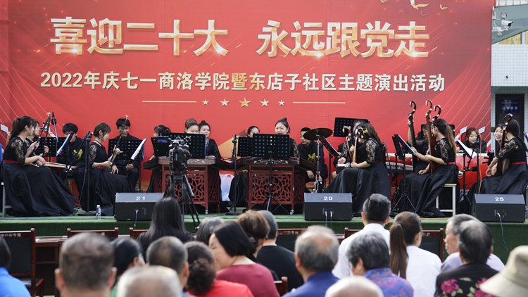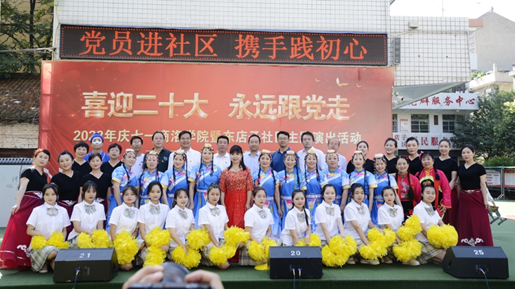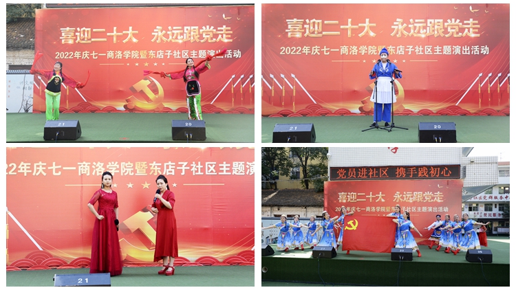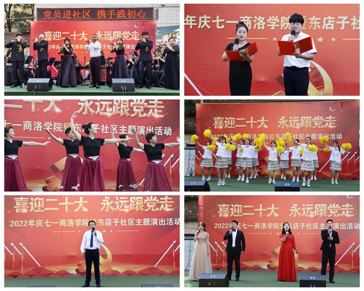 為進(jìn)一步深化黨組織和在職黨員到社區(qū)“雙報(bào)到”機(jī)制,深入開展迎接黨的二十大勝利召開“強(qiáng)國(guó)復(fù)興有我”群眾性主題宣傳教育活動(dòng),6月25日上午,由組織部、工會(huì)與東店子社區(qū)聯(lián)合舉辦的“喜迎二十大 永遠(yuǎn)跟黨走”主題演出活動(dòng)在東店子小學(xué)順利舉行。東店子社區(qū)負(fù)責(zé)人,我校黨委組織部、宣傳部、保衛(wèi)部、工會(huì)、團(tuán)委、機(jī)關(guān)各黨總支和藝術(shù)學(xué)院、健康管理學(xué)院黨委負(fù)責(zé)人,商州區(qū)城關(guān)街道辦事處相關(guān)負(fù)責(zé)人及社區(qū)群眾一同觀看了表演。