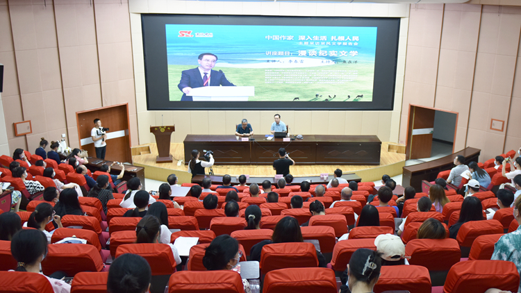 6月29日晚,中國作家“深入生活 扎根人民”暨“國之大者生態(tài)秦嶺”采訪采風(fēng)活動(dòng)文學(xué)報(bào)告會在我校舉行。河北省作協(xié)副主席李春雷為商洛市作協(xié)成員和我校師生作了題為《漫談紀(jì)實(shí)文學(xué)》的專題講座。