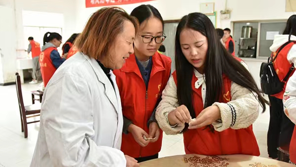 志愿者們幾人一組,攙扶老人下樓散心,幫他們推輪椅,陪他們聊天、講笑話、唱歌,為他們包餃子,叮囑他們照顧好身體,并貼心送上暖手寶,讓他們感受到更多來自社會(huì)和青年人的溫暖與關(guān)懷。