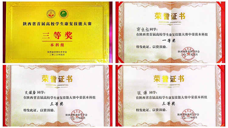 3月31至4月1日,由陜西省體育科學學會、西安體育學院共同主辦的“陜西省首屆高校學生康復技能大賽”在西安舉行,來自全省11所本科院校和4所高職院校的15支代表隊參加了比賽。我校健康管理學院康復治療專業(yè)郭佳怡、史媛睿、張嬋3名同學組隊參加了大賽。經過激烈角逐,我校代表隊取得大賽本科組團體三等獎,個人一等獎1項、三等獎2項的好成績。