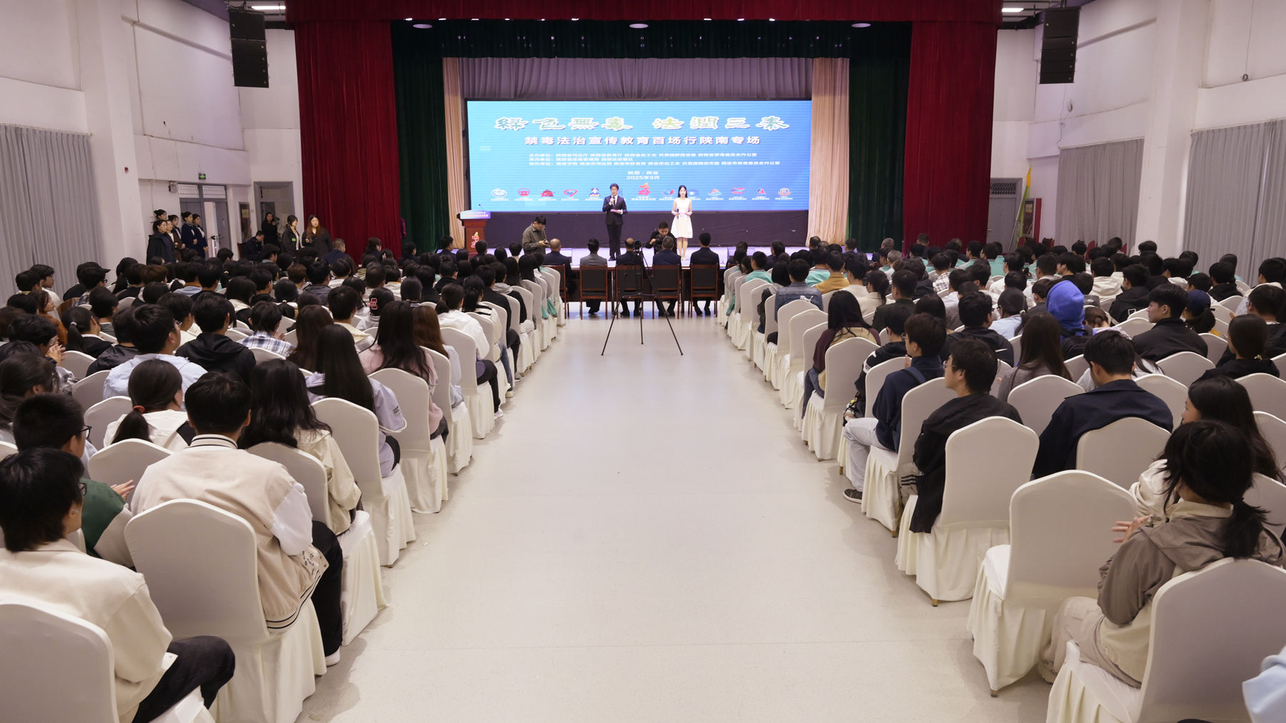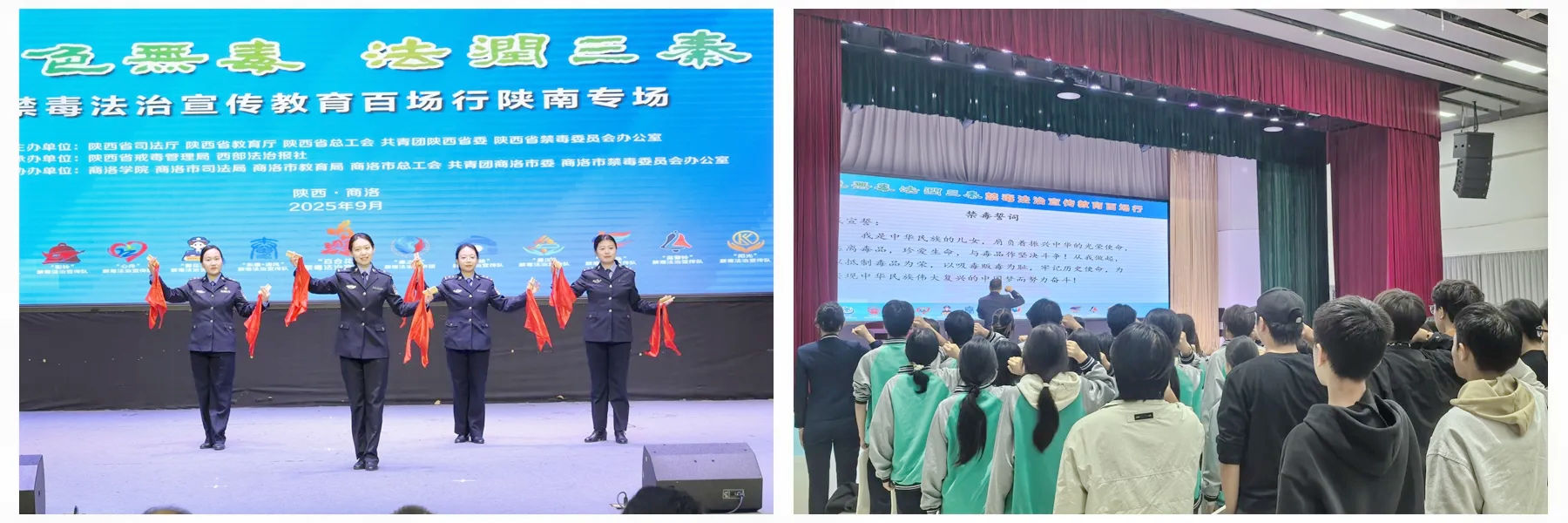 9月26日上午,由陜西省司法廳、教育廳、總工會、共青團陜西省委、省禁毒辦五部門聯(lián)合主辦的“綠色無毒 法潤三秦”禁毒法治宣傳教育百場行活動陜南專場在商洛學(xué)院舉行。校黨委副書記劉寶盈出席活動并致辭。陜西省戒毒管理局、商洛市司法局等相關(guān)部門領(lǐng)導(dǎo),省市各級媒體、行業(yè)代表,以及商洛學(xué)院、商洛職業(yè)技術(shù)學(xué)院、商州區(qū)職業(yè)教育中心的師生代表共計500余人參加活動。