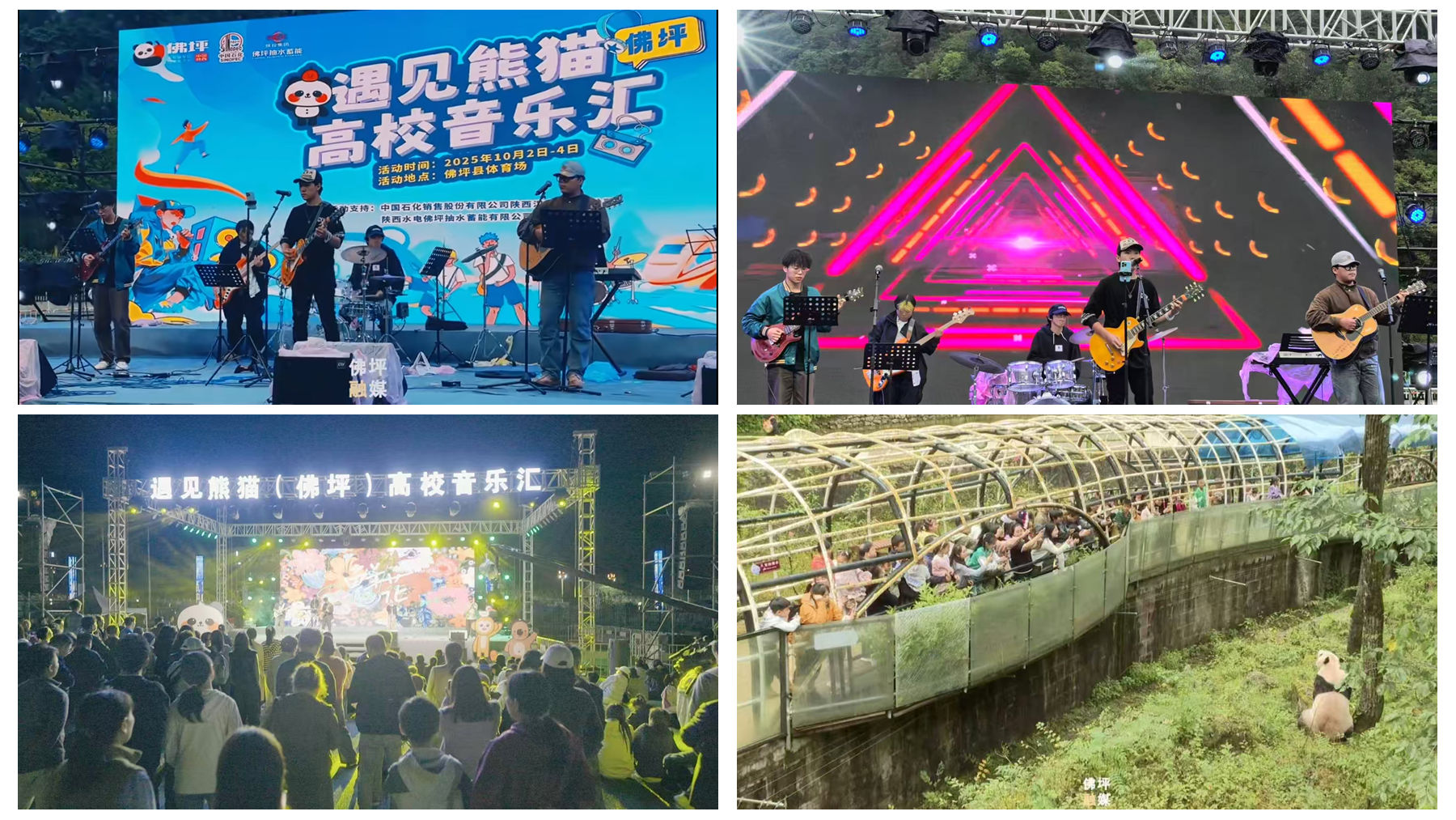 在高校音樂匯環(huán)節(jié),我校大藝團“夢影樂隊”傾情演繹了《流行》《私奔》《活著》《茶底世界》等多首歌曲。同學(xué)們憑借扎實的專業(yè)技能和飽滿的舞臺表現(xiàn)力,充分展現(xiàn)了高校學(xué)子積極向上的精神風貌,也將現(xiàn)代音樂文化與佛坪獨特的熊貓IP、自然人文景觀有機融合,為現(xiàn)場觀眾帶來一場視聽盛宴,成為“文旅+音樂”跨界融合的生動實踐。