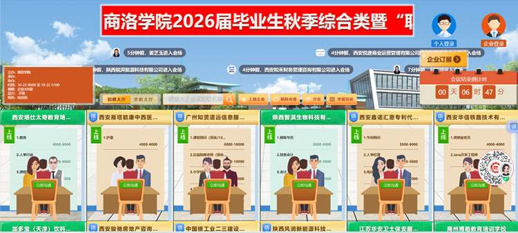 10月22日,我校舉辦2026屆畢業(yè)生秋季綜合類暨“職引未來”全國城市聯(lián)合招聘高校畢業(yè)生校園專場網(wǎng)絡(luò)視頻招聘會。招聘會共邀請華天科技(西安)有限公司、中國核工業(yè)二三建設(shè)有限公司、深圳慧通商務(wù)有限公司等高質(zhì)量用人單位260余家,累計(jì)為畢業(yè)生提供就業(yè)崗位4600余個。