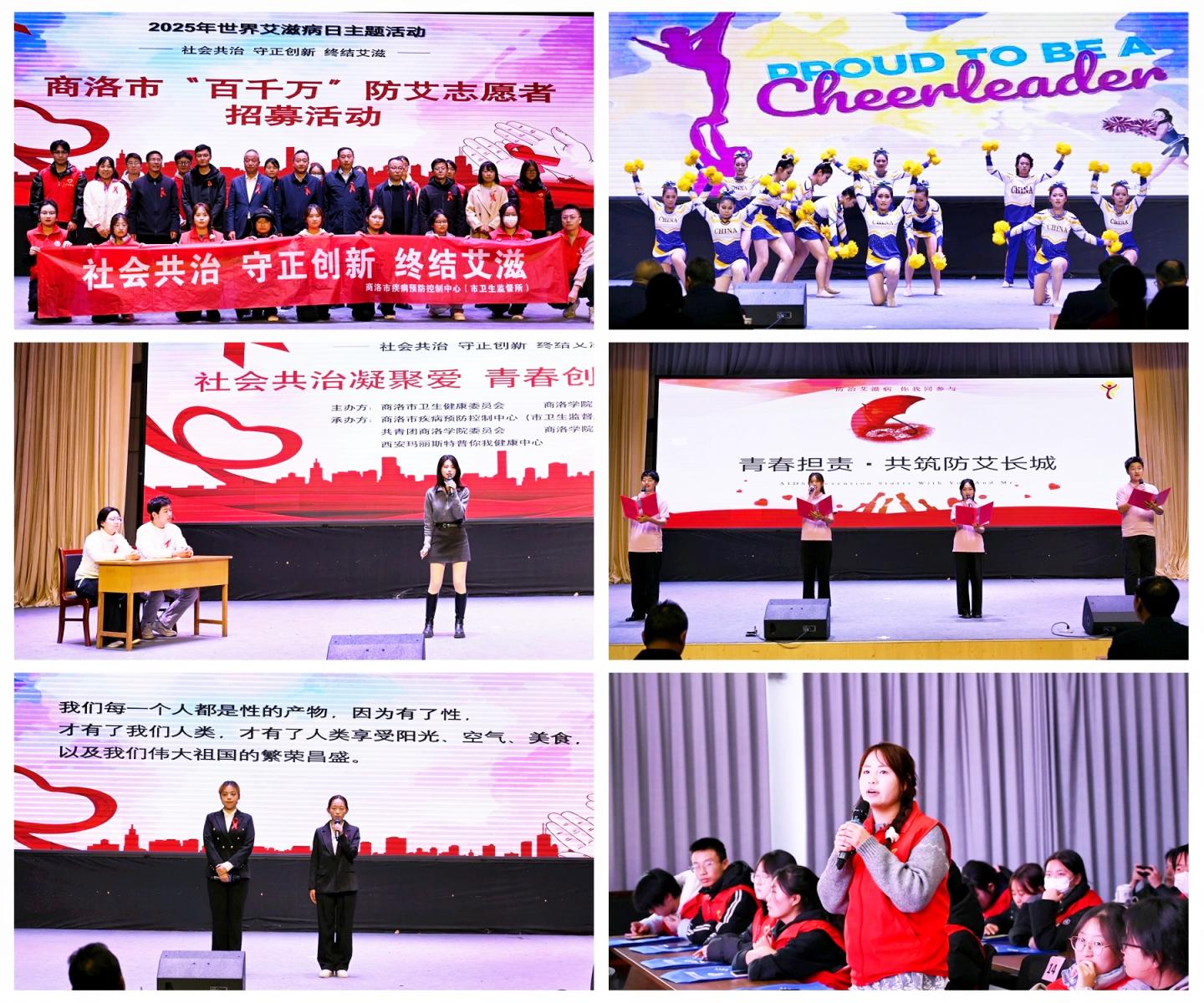 在第38個(gè)“世界艾滋病日”來臨之際,11月30日下午,由商洛市衛(wèi)生健康委員會(huì)與我校聯(lián)合主辦,商洛市疾病預(yù)防控制中心、我校后勤保障處及團(tuán)委共同承辦的“社會(huì)共治凝聚愛,青春創(chuàng)新終結(jié)‘艾’”主題宣傳活動(dòng)在我校成功舉辦。副校長(zhǎng)張向東出席活動(dòng)并致辭。商洛市衛(wèi)健委、市疾控中心相關(guān)領(lǐng)導(dǎo),疾控專家,我校黨委辦公室·院長(zhǎng)辦公室、人事處、團(tuán)委、學(xué)生處、后勤保障處等職能部門負(fù)責(zé)人,師生代表以及來自西安郵電大學(xué)等多所高校的防艾志愿者共計(jì)300余人參加本次宣傳活動(dòng)。