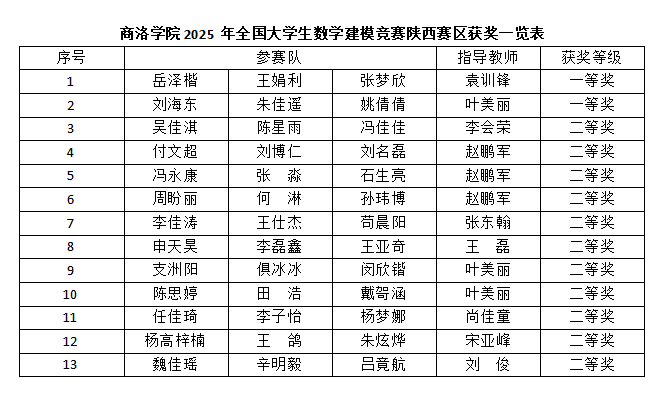 近日,2025年全國大學(xué)生數(shù)學(xué)建模競賽陜西賽區(qū)評審結(jié)果正式公布,我校學(xué)子在本屆競賽中表現(xiàn)優(yōu)異,共榮獲省級一等獎2項、二等獎11項,獲獎總數(shù)再創(chuàng)新高。