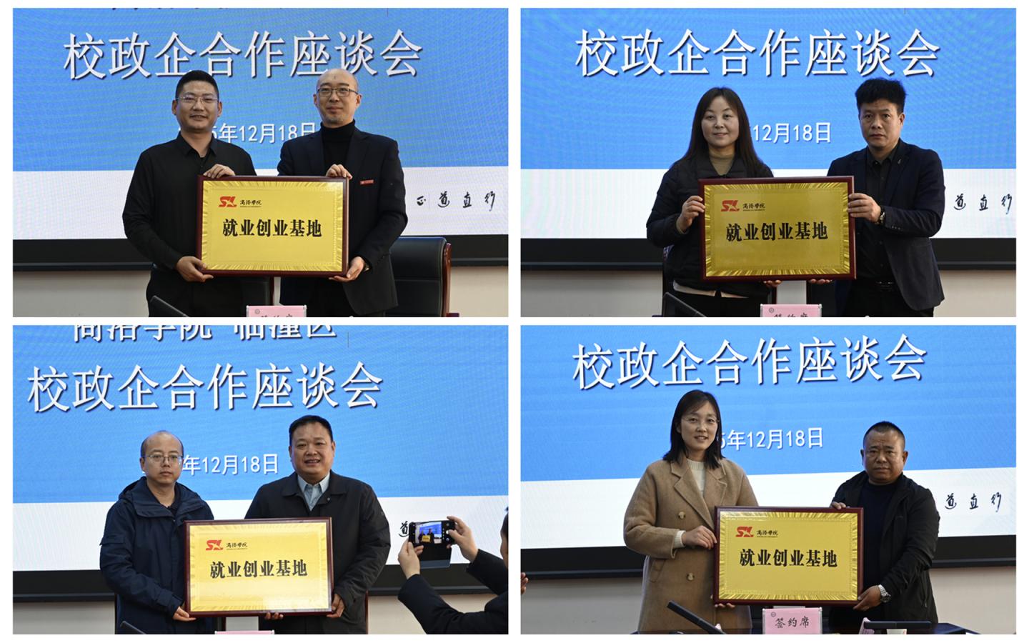 在與會人員見證下,王新軍為企業(yè)代表頒發(fā)了“就業(yè)創(chuàng)業(yè)導(dǎo)師”聘書。馬克思主義學(xué)院、人文學(xué)院、建工學(xué)院、健康學(xué)院分別與四家臨潼區(qū)企業(yè)簽署了就業(yè)創(chuàng)業(yè)基地協(xié)議并授牌。企業(yè)代表與我校相關(guān)二級學(xué)院負責(zé)人圍繞學(xué)生實習(xí)實踐、課程共建等內(nèi)容進行了深入交流。
