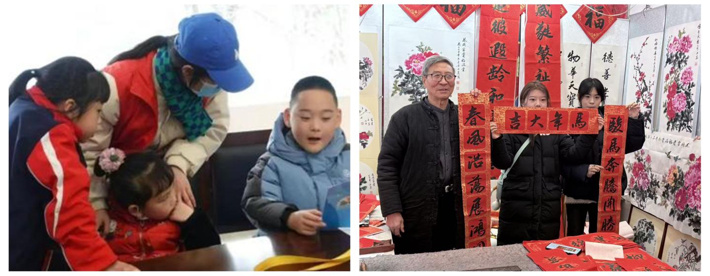 “鄰里守愛筑夢(mèng)團(tuán)”等團(tuán)隊(duì)的志愿者們走進(jìn)西安市周至縣青化鎮(zhèn)、商州區(qū)百順山莊等敬老院,與老人圍坐閑談,為老人梳頭、包餃子,貼上親手書寫的春聯(lián),用陪伴驅(qū)散冬日的孤寂。在留守兒童家中,隊(duì)員們一對(duì)一輔導(dǎo)學(xué)業(yè),通過趣味實(shí)驗(yàn)和勵(lì)志故事為孩子們種下夢(mèng)想的種子。在老年大學(xué),“春聯(lián)送?!被顒?dòng)將傳統(tǒng)吉祥語與新時(shí)代家鄉(xiāng)風(fēng)貌融入筆墨,讓傳統(tǒng)文化在老少互動(dòng)中得到傳承,將服務(wù)的溫度延伸到基層的每一個(gè)角落。