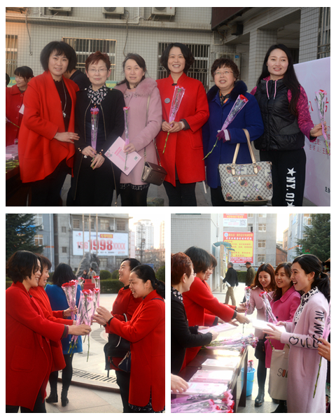 3月8日上午7:20-7:50,一號教學(xué)樓前,校黨委副書記彭虎軍和校工會、女工委工作人員手捧鮮花排成行,為數(shù)百名上班、上課的女教職工們送上鮮花、書籍,慰問辛勤工作在教書育人第一線的女教職工,并向他們致以節(jié)日的祝福和問候,祝愿她們身體健康、工作順利、闔家幸福。