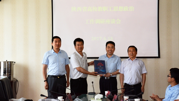 6月15日,由陜西省教育工會副主席陳鵬帶隊,由西安外國語大學工會主席趙沛、思政部副主任張親霞等一行7人組成的課題調(diào)研組來我校,對我校教職工思想政治工作開展調(diào)研。校黨委書記龍治剛會見了調(diào)研組成員。校黨委副書記、工會主席彭虎軍陪同會見,并與調(diào)研組進行座談。座談會由趙沛主持。