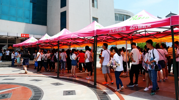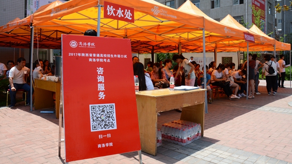 6月18日,是陜西省普通高校招生外語口語考試日。上午7:30開始,1541名考生陸續(xù)從商洛各地趕赴我校,在學生志愿者的引導下,有序排隊進入考場參加考試,家長則在指定區(qū)域休息等候。