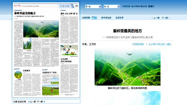 7月22日,我校教師王天時教授在《光明日報》以《秦嶺里最美的地方——陜西商洛四十余年堅持飛播造林實現(xiàn)山美水美》為題發(fā)表文章,詳細介紹了商洛飛播造林帶來的生態(tài)美,總結(jié)了商洛綠色發(fā)展的經(jīng)驗。全文如下: