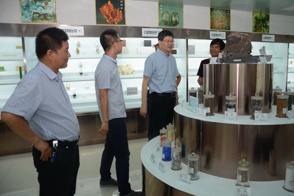 史高領(lǐng)一行深入重點(diǎn)實(shí)驗(yàn)室沙盤標(biāo)本陳列室、有價(jià)元素提取室、材料制備室、材料性能檢測室、尾礦無害化處理室等處,詳細(xì)考察了實(shí)驗(yàn)室硬件設(shè)施建設(shè)、配備情況和項(xiàng)目研究工作開展進(jìn)度。我?;膶W(xué)院院長、尾礦資源綜合利用重點(diǎn)實(shí)驗(yàn)室主任周春生做了詳細(xì)講解。