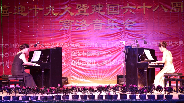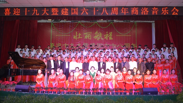 9月28日晚,由陜西省文學藝術界聯(lián)合會、中共商洛市委宣傳部、商洛市文學藝術界聯(lián)合會主辦,我校藝術學院、商洛市音樂家協(xié)會承辦的,以“壯麗航程”為主題的喜迎十九大暨建國68周年商洛音樂會在我校大學生活動中心上演。校領導龍治剛、王思懷、魏書堂、劉寶盈,省文聯(lián)組聯(lián)部副主任趙光遠、趙長川,商洛市政協(xié)副秘書長楊平安、郭毅,商洛市委宣傳部副部長、市文明辦主任李丹峰,商洛市人大常委會教科文衛(wèi)工委主任郭菊賢,商洛日報社副總編輯趙有良,商洛市文廣新局副局長王勁,市文聯(lián)黨組書記王良、專職副主席李志華,商洛市音樂家協(xié)會主席林宏彥、市青年作協(xié)主席馮玲子同商洛市音樂屆人士、我校處級領導干部、師生代表一同觀看了晚會。