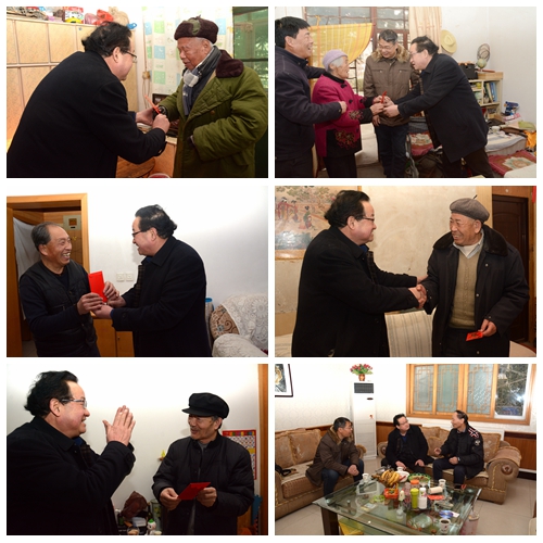 2月9日,在春節(jié)即將來臨之際,副校長魏書堂在院長辦公室、離退休職工工作處負(fù)責(zé)人的陪同下先后來到張和銀、崔振喜、費(fèi)興順、任書年、王安言、王忠孝、張孝春等退休職工家中,為他們送去了慰問金和學(xué)校黨政的祝福與關(guān)懷。