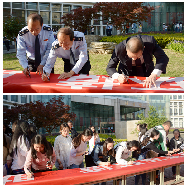 聽完講座后,師生們紛紛在“優(yōu)化稅收營商環(huán)境 助力經(jīng)濟(jì)高質(zhì)量發(fā)展”宣傳橫幅上簽名,表達(dá)自己爭做守法納稅人的決心。