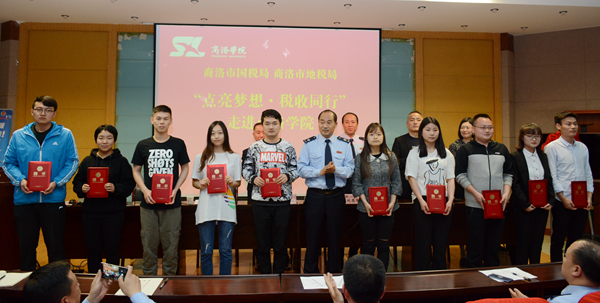 在第27個全國稅收宣傳月到來之際,為了宣傳普及稅法知識,增強(qiáng)師生稅法意識,4月19日,商洛市國稅局、商洛市地稅局聯(lián)合開展的“點(diǎn)亮夢想?稅收同行”稅法宣傳活動走進(jìn)我校。紀(jì)委書記王思懷,市國稅局副局長劉存智,市地稅局副局長馮書云出席活動。我校宣傳部、財(cái)務(wù)處、經(jīng)管學(xué)院負(fù)責(zé)人及相關(guān)人員,國稅、地稅干部,經(jīng)管學(xué)院師生代表150余人參加活動。
