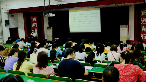 為了進一步學習貫徹黨的十九大精神,把“初心”和“使命”融入到教育教學工作的各個方面,6月21日,我校圖書館直屬黨支部,機關(guān)一黨總支第一黨支部、第二黨支部,繼續(xù)教育學院直屬黨支部,馬克思主義學院黨總支,人文學院黨總支聯(lián)合舉辦了“不忘初心、牢記使命”慶七一專題報告會。報告會由校紀委副書記劉端森教授主持。