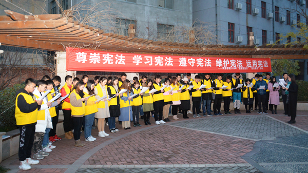 12月4日是我國第五個(gè)國家憲法日暨第18個(gè)全國法制宣傳日。今天早晨,我校在一號(hào)教學(xué)樓前舉行升國旗儀式并在莘子苑舉行憲法晨讀活動(dòng)。校黨委宣傳部、團(tuán)委負(fù)責(zé)人及相關(guān)人員,青馬班學(xué)員、健康管理學(xué)院學(xué)生代表參加活動(dòng)。
