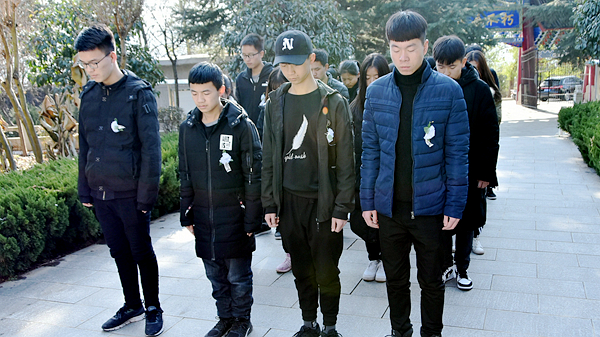 在莘子苑,學(xué)生會(huì)、新青年通訊社的學(xué)子們伴隨著雄壯的國(guó)歌聲,全體齊唱中華人民共和國(guó)國(guó)歌,并集體默哀一分鐘,哀悼罹難的同胞。學(xué)生代表郝志杰作主題發(fā)言。他說(shuō),作為當(dāng)代大學(xué)生,應(yīng)學(xué)習(xí)歷史,反思?xì)v史,牢記歷史,勿忘國(guó)恥,決不能忘卻歷史,忘卻苦難,還要立志成才,學(xué)好扎實(shí)本領(lǐng),自覺(jué)把個(gè)人的理想追求融入國(guó)家和民族的事業(yè)中,做社會(huì)主義建設(shè)者和接班人。隨后,參加活動(dòng)的全體人員還一起閱讀愛(ài)國(guó)書籍,從書中回顧民族歷史,增強(qiáng)愛(ài)國(guó)熱情,并紛紛在“銘記歷史 勿忘國(guó)恥”的橫幅上簽字表態(tài),表明他們不忘歷史、愛(ài)國(guó)奮進(jìn)的堅(jiān)定決心。