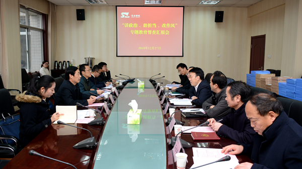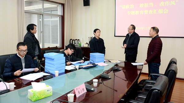 12月27日,由市直機(jī)關(guān)工委副書記王軍民帶領(lǐng)的市委第十督導(dǎo)組一行5人來我校督導(dǎo)檢查“講政治、敢擔(dān)當(dāng)、改作風(fēng)”專題教育工作情況,對我校基層黨組織標(biāo)準(zhǔn)化建設(shè)進(jìn)行考核驗收。黨委副書記彭虎軍出席督導(dǎo)座談會,黨委各部門負(fù)責(zé)人參加了會議。
