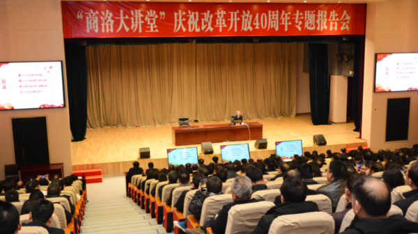 12月29日,“商洛大講堂”在商洛市行政中心舉辦慶祝改革開放40周年專題報(bào)告會(huì),特邀我校楊增強(qiáng)教授作報(bào)告。我校黨委書記龍治剛、校長(zhǎng)范新會(huì)、部分處級(jí)干部與商洛市委中心組成員、各市直機(jī)關(guān)單位相關(guān)負(fù)責(zé)人等400余人一起聽(tīng)取了報(bào)告。