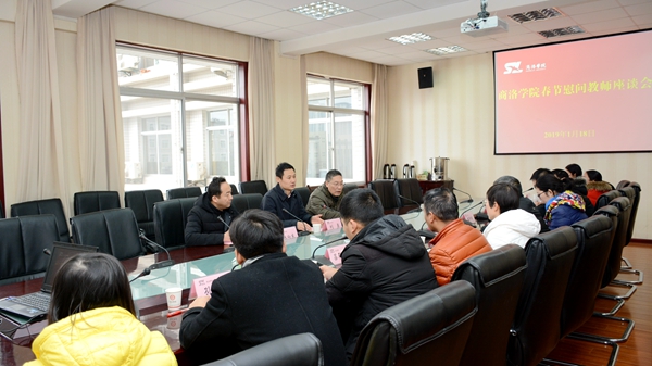 1月18日上午,我校召開2019年春節(jié)慰問教師代表座談會,副校長劉勇代表學校向與會教師送去了節(jié)日的問候和誠摯的祝福。黨委委員、院長辦公室主任張向東參加座談會,黨委委員、教務(wù)處處長李超主持座談會。
