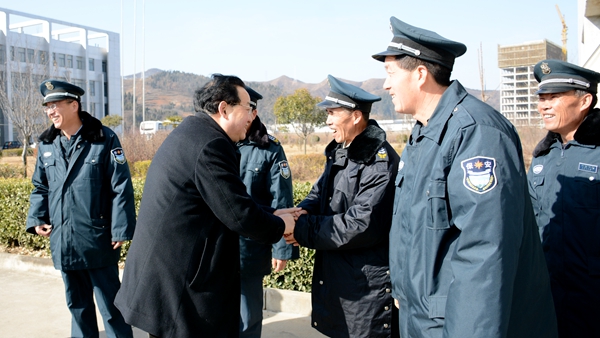 每到一處,校領導都與值班工作人員親切握手并送上節(jié)日慰問金,對他們在春節(jié)期間堅守工作崗位表示感謝,祝愿他們在新的一年里工作順利、幸福安康、萬事順意,叮囑他們要安排好寒假和春節(jié)期間的工作和生活,確保廣大師生度過一個歡樂祥和的春節(jié),希望他們在新的一年持續(xù)發(fā)揚愛崗敬業(yè)優(yōu)良傳統(tǒng),一如既往認真履職,為學校和諧穩(wěn)定發(fā)展做好各項服務保障工作。