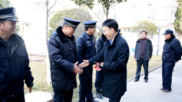 爆竹聲聲辭舊歲,春風送暖迎新年。2月4日,在農歷除夕,副校長魏書堂、黨委副書記彭虎軍深入我校北新街校區(qū)和丹江校區(qū),看望慰問寒假和春節(jié)期間仍然堅守在工作一線的教職員工,為他們送上節(jié)日問候和新春祝福。黨委辦公室·院長辦公室、保衛(wèi)處、后勤保障處、丹江校區(qū)管理處等相關職能部門負責人參加了慰問活動。