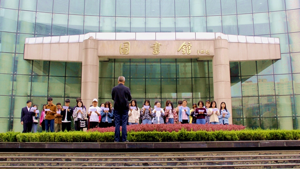 活動中,在楊增強教授的領讀下,圖書館門前響起了國學經(jīng)典《勸學》的誦讀聲,朗朗的讀書聲在校園里回蕩,每一位參與誦讀的師生都在濃濃書香中深切感受到了傳統(tǒng)文化的魅力,接受了一次國學的精神洗禮。